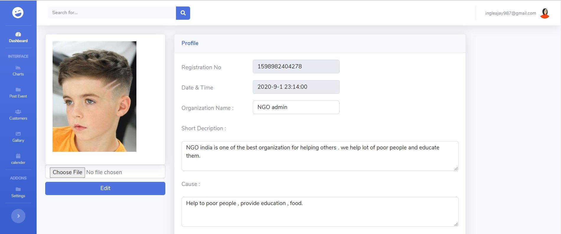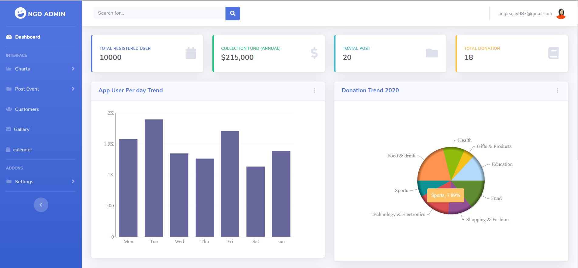 • Its gives ablity to admin to analysis user donation and transaction throughout world by data visulizations graph as well as post event and update awarenes amond all people.