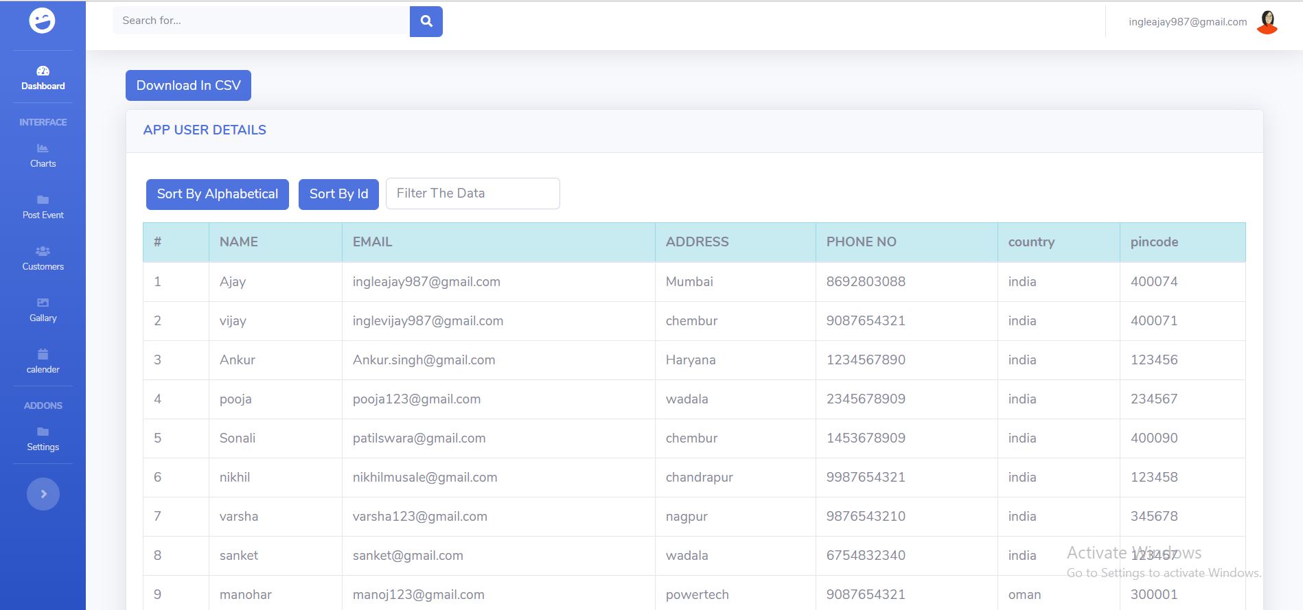 • Extract Users data in CSV sheet