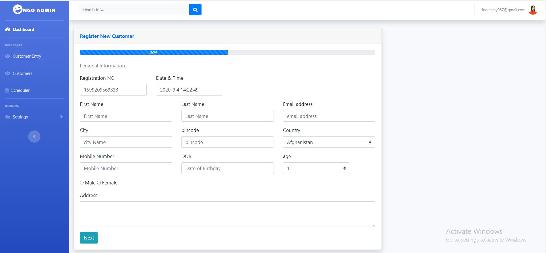 Offline Ngo can register user for know upcoming events and collect donations from users as well as analysis of donation by charts